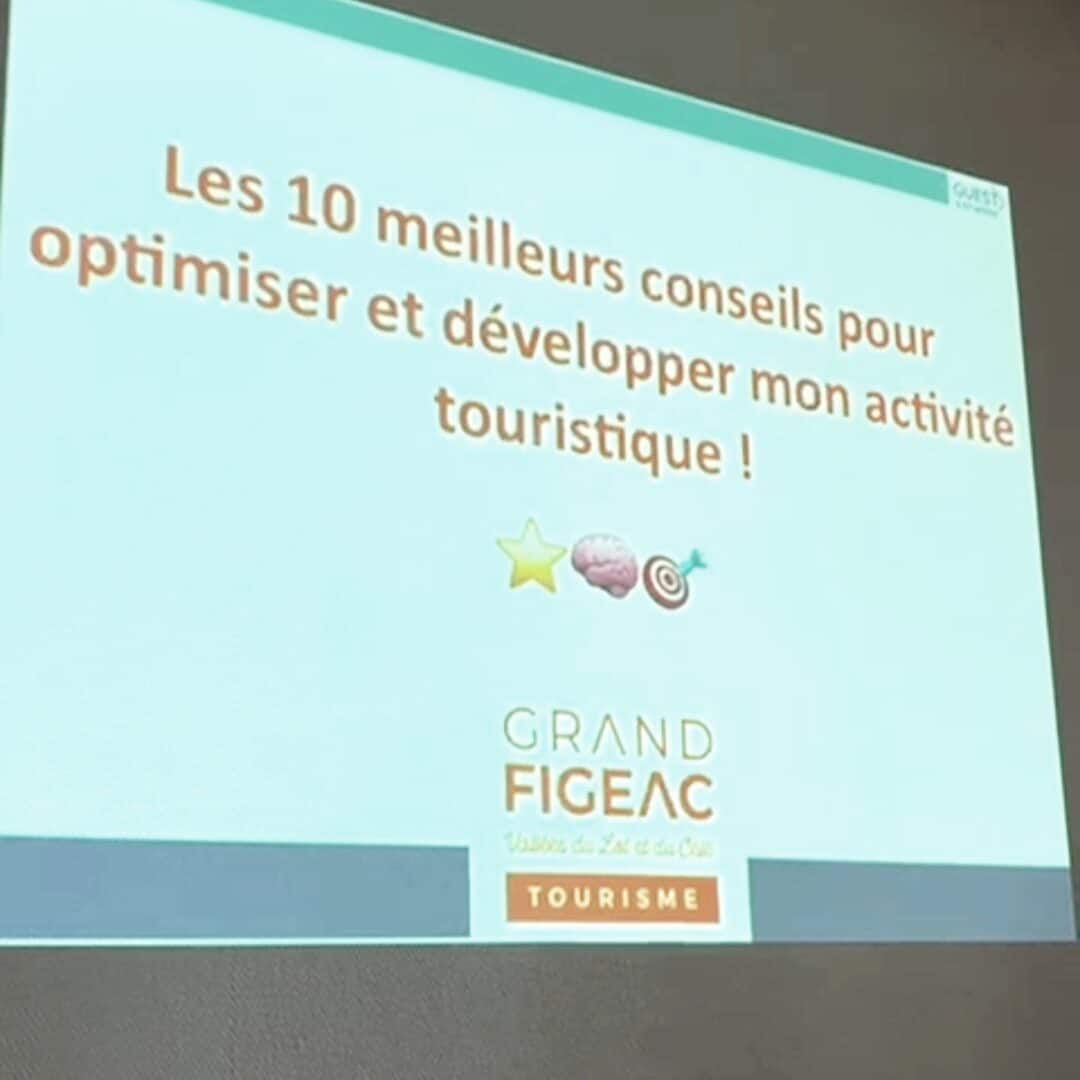 L’Office de Tourisme du Grand Figeac dans le Lot a sollicité Jérôme Forget pour animer une conférence dédiée aux professionnels du tourisme sur « Les 10 meilleurs conseils pour optimiser et développer mon activité touristique ! » qui a eu lieu le lundi 09 mars 2026 après-midi.